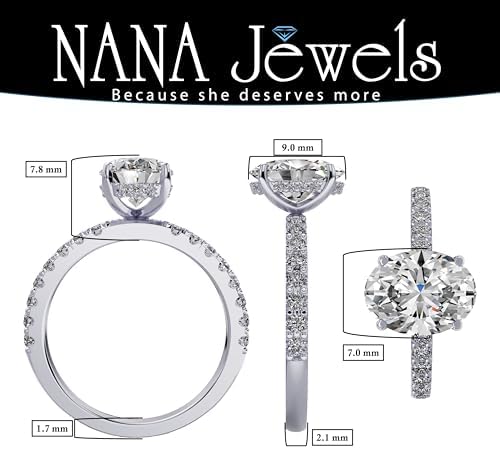 NANA Jewels 1.5-3CT Platinum Plated Sterling Silver Rings CZ Cubic Zirconia Oval Cushion Princess Asscher Cut Engagement Rings 10K 14K Solid Gold