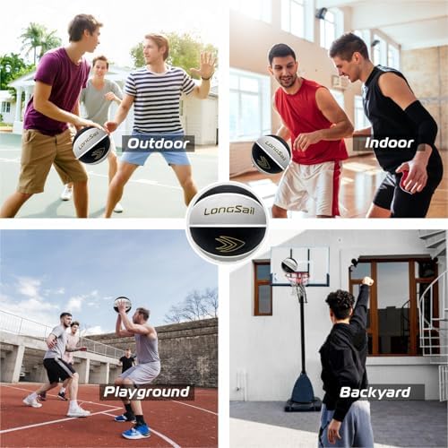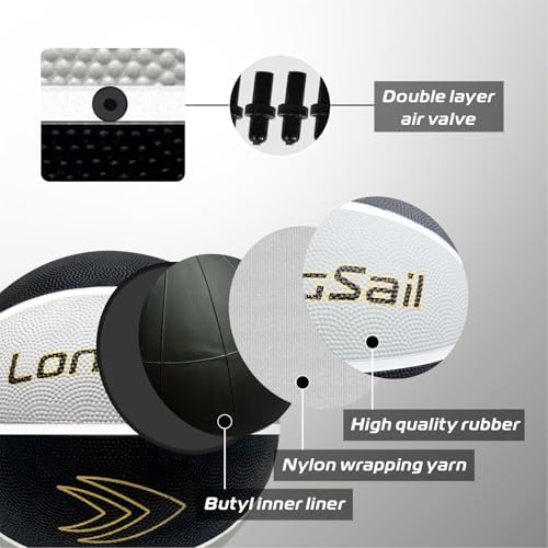Longsail Full Size Basketball Rubber- Leather,Indoor-Outdoor-Pool,with Pump(Deflated)