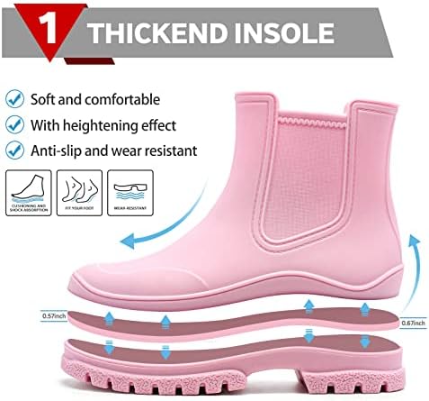 Hsttgsr Women's Rain Boots, Comfortable Elastic Adult Ankle Booties, Fashion Mid Heel Chelsea Boots, Waterproof Non-Slip Chunky Platform Lug Sole Short Garden Boots