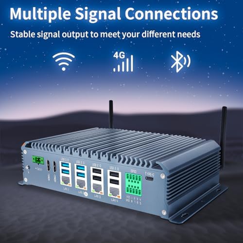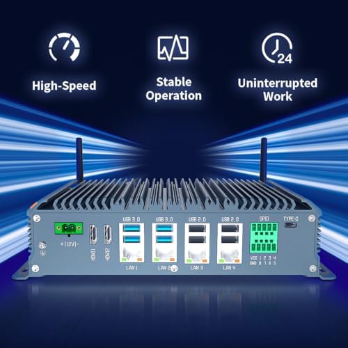 SunKol Fanless Industrial PC Windows 11 Pro Desktop PC, Intel I5-10310U 16GB RAM 512GB SSD, 4xLAN, 4xUSB 3.0, 4xUSB 2.0, 6xCOM, 8xGPIO, Dual HDMI, VGA, Type-C, WiFi, Rugged Mini Computer