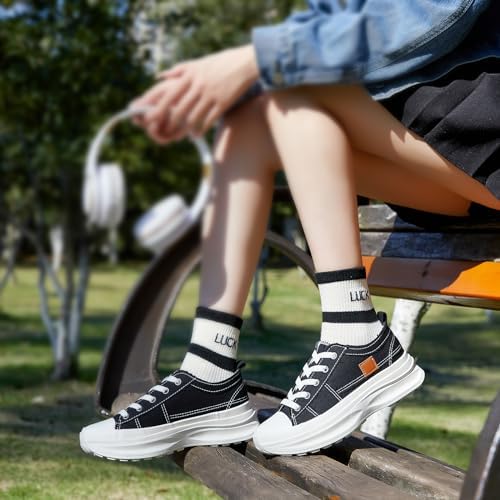 ZGR Women's Low cut Thick soled Sneakers, White Canvas Sneakers, Casual Thick soled Tennis Shoes