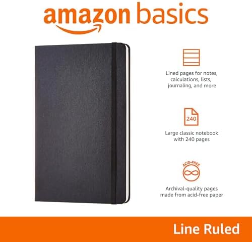 Amazon Basics Classic Lined Notebook, 240 pages hardcover, 5 x 8.25 inches, black