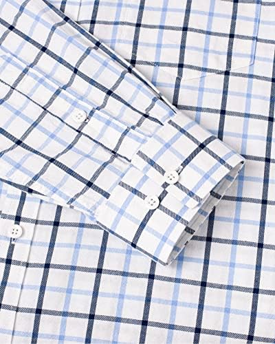 Alimens & Gentle Men's Plaid Button Down Shirts Cotton Long Sleeve Dress Shirts Regular Fit Gingham Shirts