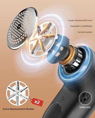 Fabric shaver fuzz remover, rechargeable fuzz shaver with 6 blade blades, sweater fuzz remover, quickly removes fuzz balls, suitable for clothes, sweaters, sofas, blankets, curtains, wool, cashmere