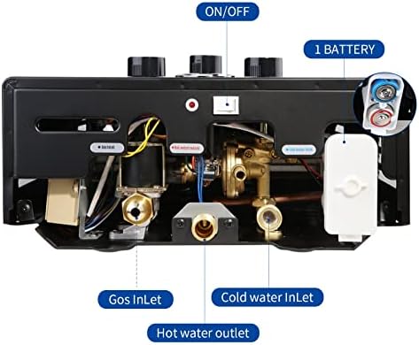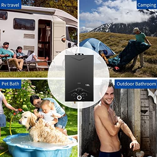Tankless Water Heater 4.21GPM 16L Outdoor Portable GasHot Water Heater Instant Propane Water Heater with Digital Display Multi-Protection for Camping Trips Boat Cabins