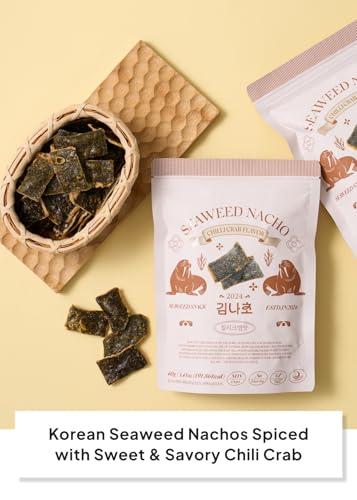 Korean Food SEA*ART Chilli Crab Flavored Seaweed Nachos \u2013 40g (1.41oz) Zipper Pack \u2013 Bold Chilli Crab Kick, Crispy & All-Natural, 100% Vegan Fusion Gourmet Sea Vegetable Treat
