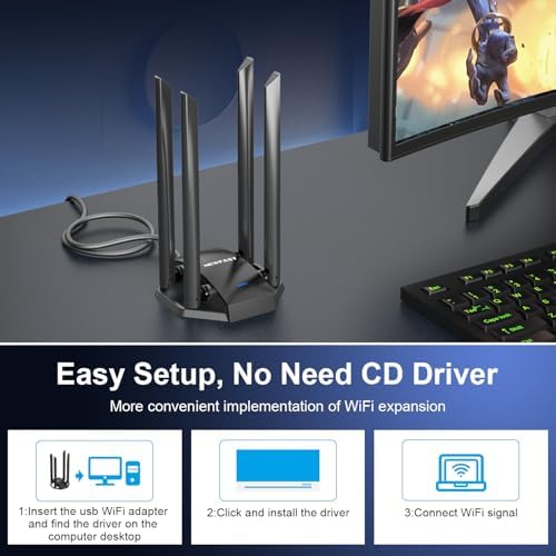 NEWFAST AC1300 USB WiFi Adapter (NF- U329), USB3.0 Wireless Dual Band Network Adapter, 2.4GHz\/5GHz USB Wi-Fi Adapter for Desktop PC, MU-MIMO, 4 Antennas, WiFi Dongle for Windows XP\/7\/8\/8.1\/10\/11