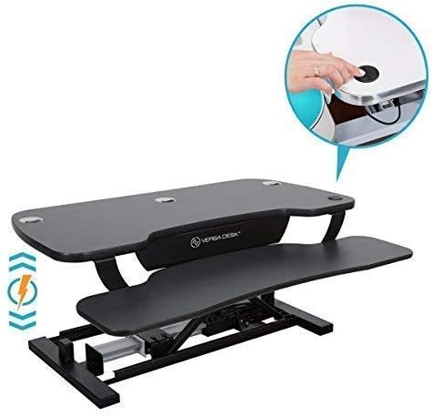 VERSADESK® PowerPro™ 36\u201D x 24\u201D Standing Desk Converter 7.75\u201D - 23.5\u201D Electric Height Adjustable Sit to Stand Desk Riser w\/Keyboard Tray & USB Hub - Ergonomic Workstation for
