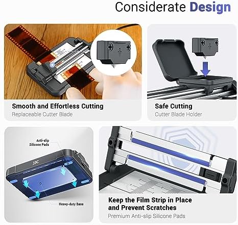 JJC Negative Slide Film Cutter for 35mm 120 Format Strip, 35mm Film Trimmer with 11-Level Brightness Adjustable LED Backlight Panel Support USB-C Charging and Graduated Mark for Clean Cutting