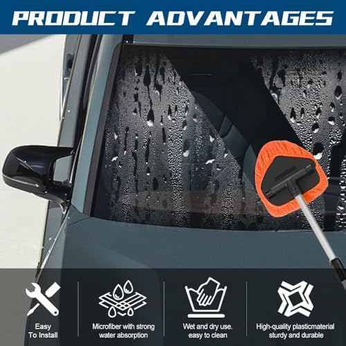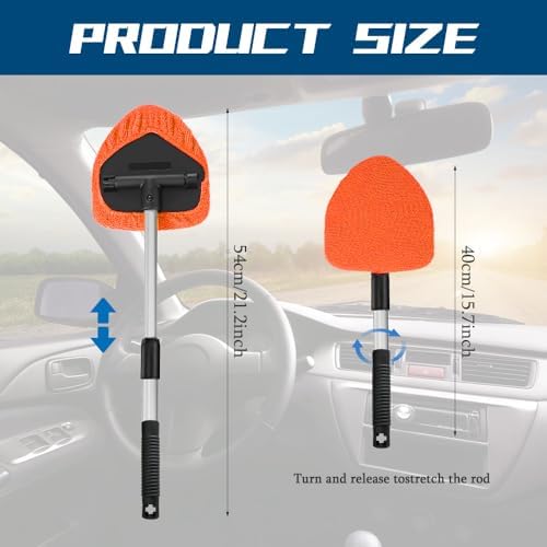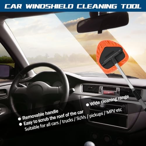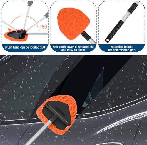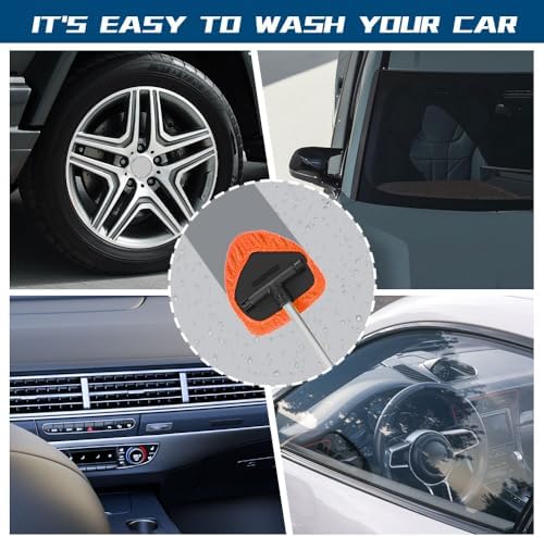 RGOAANC Car Wash Brush with Long Handle, Windshield Cleaning Tool, Car Washing Mop Kit Mitt Sponge Car Cleaning Supplies Kit, Microfiber Towel Gloves Universal for Cars RV SUV Truck Office (Orange)