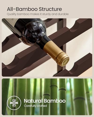 SONGMICS 42-Bottle Wine Rack Free Standing Floor, 7-Tier Display Wine Storage Shelves with Table Top, Bamboo Wobble-Free Bottle Holder for Kitchen Bar Dining Room Living Room, Espresso UKWR27BR