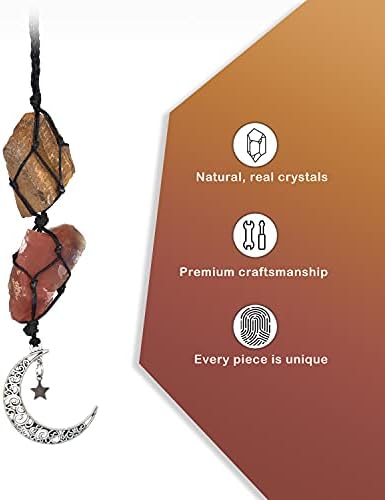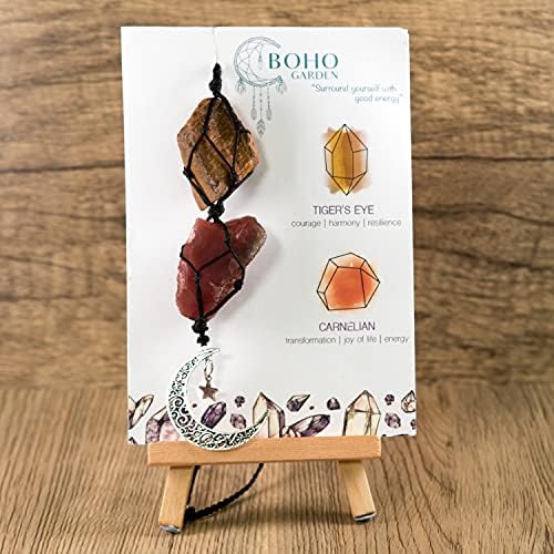 BOHO GARDEN Hanging Car Charm - Tiger's Eye & Carnelian - Dangling Moon, Healing Crystal Accessories, Rearview Mirror Decorations - Courage, Harmony, Resilience, Transformation, Joy of Life, E