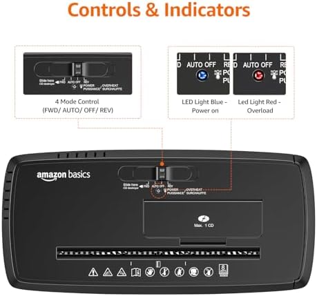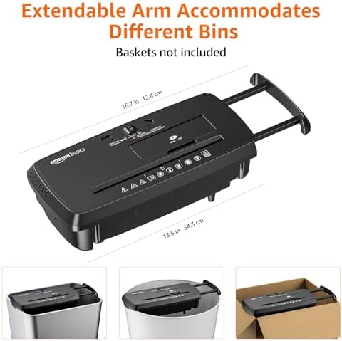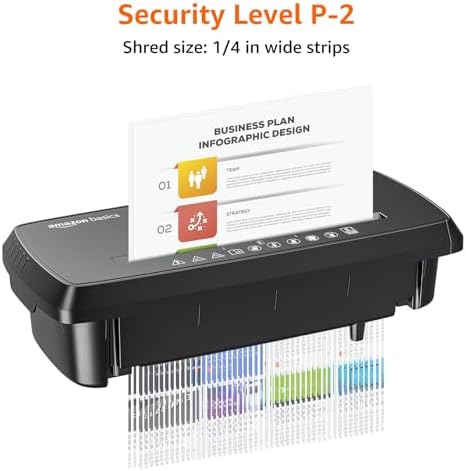 Amazon Basics 8-Sheet Strip Cut Paper, CD, and Credit Card Shredder with Auto-Off Compact, Portable Design, No Basket, Extendable Arm, Black