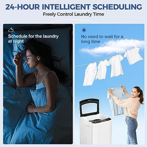Nictemaw Portable Washing Machine, 17.8Lbs Portable Washer Machine, 2.4Cu.ft Compact Laundry Washer and Dryer Combo with Drain Pump, 10 Wash Programs 8 Water Levels for Apartment RV Dorm-Glass Cover