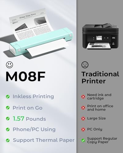 Phomemo Inkless Portable Printer for Travel - [Upgrade] Wireless Thermal Printer Compatible with Phone & Laptop, Bluetooth Printers Supports 8.5" X 11" Letter Thermal Paper, Come with Carr