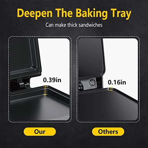 Aigostar Sandwich Maker with Non-stick Deep Grid Surface for Egg, Ham, Steaks Compact Electric Grill Tostadora de Pan Black, ETL Certificated, Roy