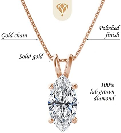 The Diamond Deal 1\/4 Carat - 5 Carat IGI Certified Lab Grown Diamond Pendant Necklace For Women 14K White, Yellow Or Rose Gold Lab Created Solitaire Lab-Grown Diamond Pendant Necklace