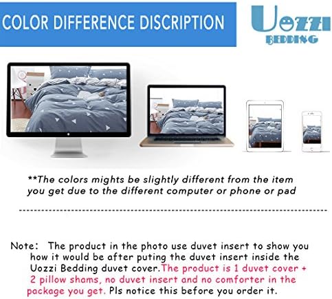 3 Pieces Duvet Cover Set Blue Gray with White Triangles - Ultra Soft and Easy Care Design Summer Bedding Duvet Cover Queen Size 90x90+ 2 Pillow Shams- 800 TC with Zipper Closure 4 Corner Ties