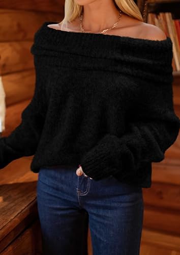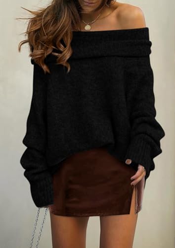 PRETTYGARDEN Women's Off The Shoulder Sweater Long Sleeve Tops 2025 Fall Loose Knit Pullover Sweaters Winter Clothes