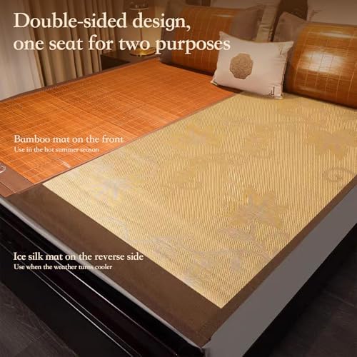 Foldable Double Sided Bamboo Mat for Bed,Summer Bamboo Sleeping Mat,Home Quick Cooling Textile Rattan Mat Suitable for Children,Adults and Seniors