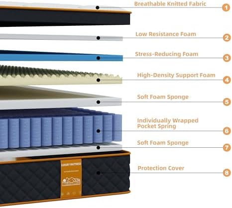 Qabefy Full Mattress, 12 Inch Memory Foam Hybrid Mattress in a Box, Medium Firm and Individually Pocket Springs - Pressure Relief, CertiPUR-US Certified, Motion Isolation