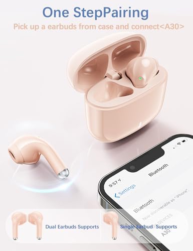 Bluetooth Headphone Small Ear Bud for Women Girls Workout Sports Gym Earphones 5.3 Wireless Earbud with Mic for Apple iPhone 15 16 Pro Max 16e 14 Plus 13 Google Pixel Samsung Galaxy S25 S24 Pink