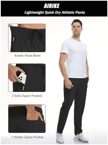 AIRIKE Men's Elastic Waist Hiking Pants Water Resistant Quick-Dry Lightweight Outdoor Sweatpants with Zipper Pockets