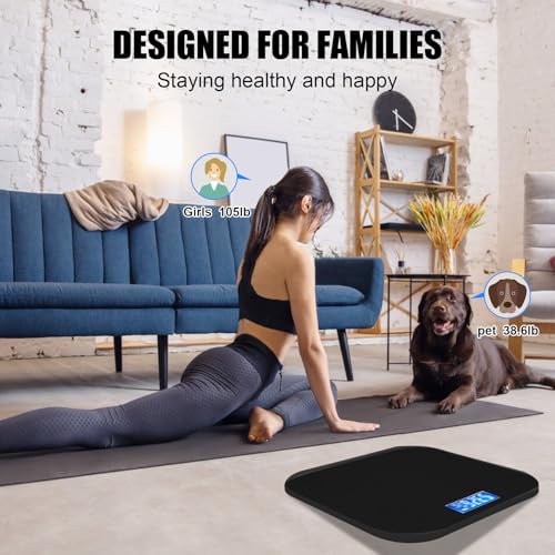 Smart Scale for Body Weight Digital Bathroom Scale with Blue LCD Backlight Display Highly Accurate Body Weight Scale Body Fat Scale Temperature Indication Corner Design 400lbs (Black)