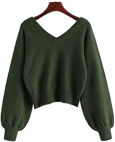 ZAFUL Women's Cropped Sweater V-Neck Long Sleeve Crop Sweater Pullover Jumper Knit Top
