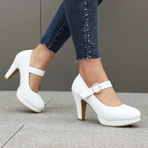 ForeMode Bow Mary Jane Shoes High Heels Closed Round Toe Pumps Leather Summer Sweet Shoe