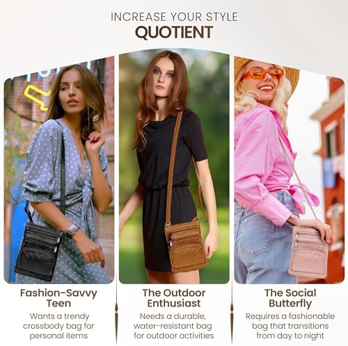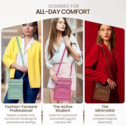Krediz leather Crossbody Purses for Women, Multi Pocket Crossbody Purse with Adjustable Strap, Soft & Durable Leather Purse
