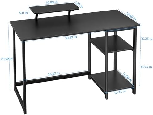 GreenForest Computer Desk 39 Inch with Monitor Stand, Office Desk with Adjustable Storage Shelves, Small Gaming Desk for Home Work Writing Study, Black