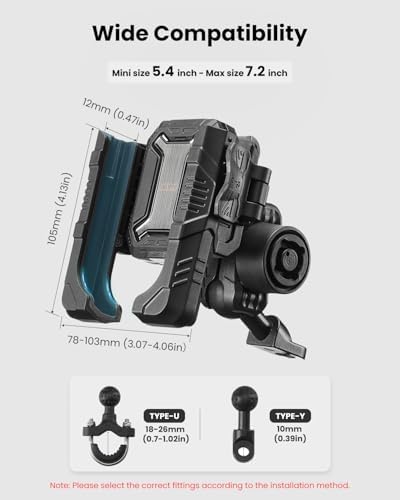 ILM Motorcycle Phone Mount Cellphone Adjustable Holder for Handlebars Bike Bicycle Scooter Moped Fit 5.4''-7.2'' Smartphones Y-Type