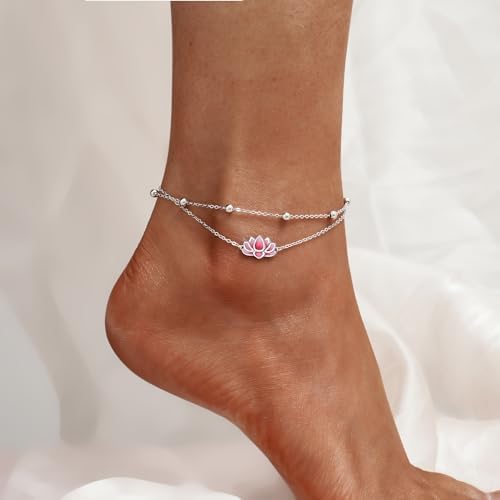 LINGBG JEWELRY 925 Sterling Silver Anklets Bracelets for Women Lotus Flower Anklets Dainty Beach Layered Bracelet Jewelry for Wife Girlfriend Friends