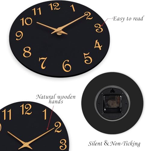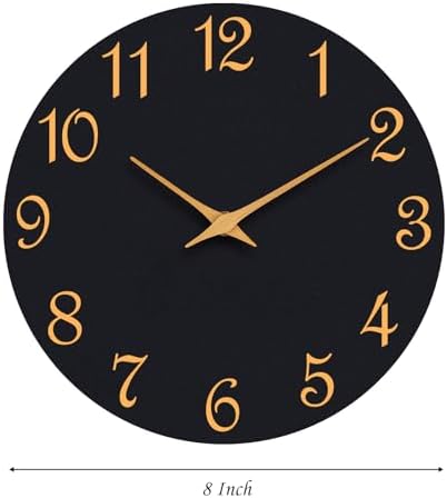 Roymnie Wall Clock, 8 Inch Modern Wall Clocks Battery Operated, Small Silent Non Ticking Clock Decorative for Kitchen, Bathroom, Bedroom, Desk, Bookshelf (Black Gold)
