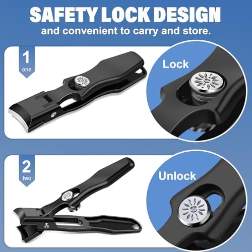 Slanted Nail Clippers for Men, Popular Wide Jaw Nail Clippers with Catcher, Sharp Ingrown Toenail Clippers with Slanted Curved Blade, Wide Opening Anti Splash German Nail Clipper Fingernail
