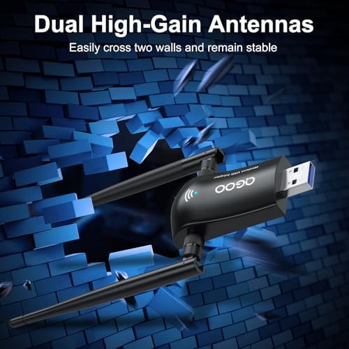 Wireless WiFi Adapter for Desktop PC - QGOO AC1300Mbps USB 3.0 Network Dongle with 5dBi High Gain Dual Antennas, 2.4GHz\/5GHz Dual Band for Laptop Computer Compatible Windows11\/10\/8