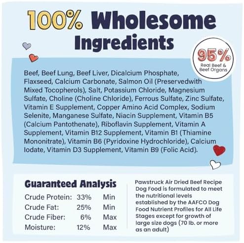 Pawstruck Air Dried Dog Food with Real Beef, Grain-Free, Made in USA, Non-GMO & Vet Recommended, High Protein Limited Ingredient Full-Feed for All Breeds & Ages, 2lb Bag
