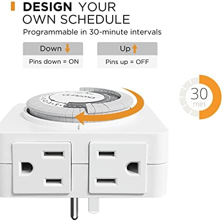G-Homa 24-Hour Mechanical Timer Outlet with 2 Grounded Outlets - For Lamps, Holiday Lights