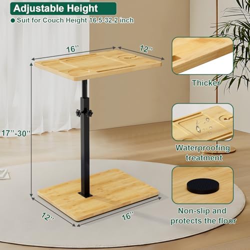 XNSDXV Bamboo C Table End Table Adjustable Height, 360°Swivel TV Tray for Couch, Snack Side Tables with Phone & Tablet Slot, C Shaped Couch Table for Small Place\/Bathtub\/Recliner\/Bed\/Sofa (Natrual