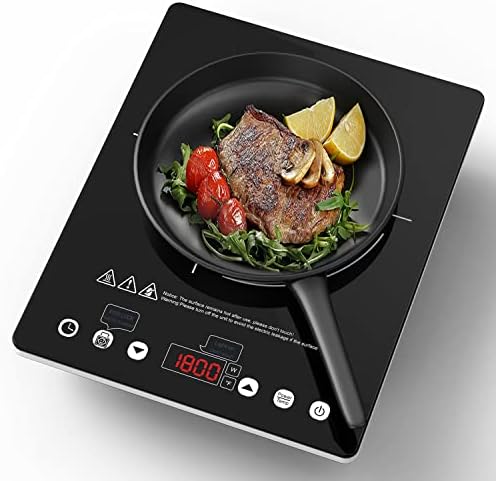 Electric Cooktop 110v,Single Burner Electric Stove Infrared Cooktop Hot Plate 1800W,4-Hour Setting,Black Crystal Glass Surface Compatible for All Cookware