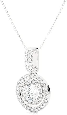 Privosa Fine Jewelry 1\/2 to 5\/8 Carat Diamond Double Halo Pendant Necklace for Women in 14k White Gold (F-G, SI2-I1, cttw) with 18 Inch Silver Chain and Lobster Claw