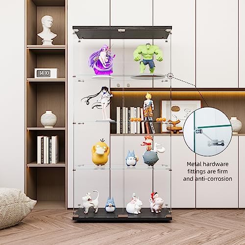 FLYMUHJIA Glass Display Cabinet Kitchen Pantry Storage Cabinet Corner Bar Cabinet with Four Level Double-Door, 64\u201Dhx32''lx 14''w Black\u2026 NDJG-B