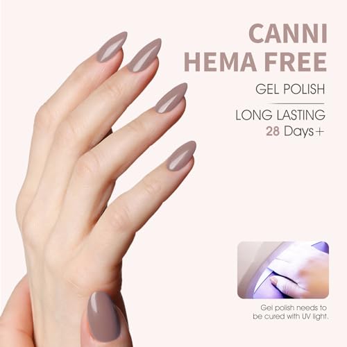 CANNI Light Brown Gel Nail Polish, 1Pcs Nude Grey Gel Polish Color High Gloss Soak Off U V Nail Manicure Salon DIY