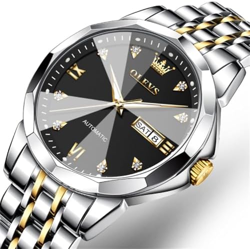 OLEVS Automatic Watches for Men Business Dress Watch Mechanical Stainless Steel Waterproof Self Winding Classic Date Luxury Diamond Men Wrist Watch