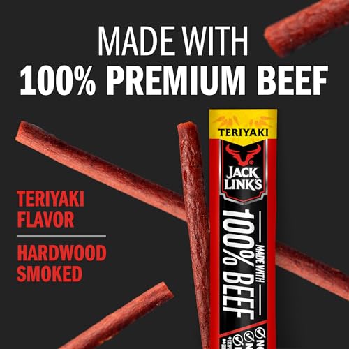 Jack Link's Beef Sticks, Teriyaki - Protein Snack, Meat Stick with 5g of Protein, Meat Snack Sticks Made with 100% Beef, Keto Friendly, Individually Wrapped - 0.92 Oz. (20 Count)