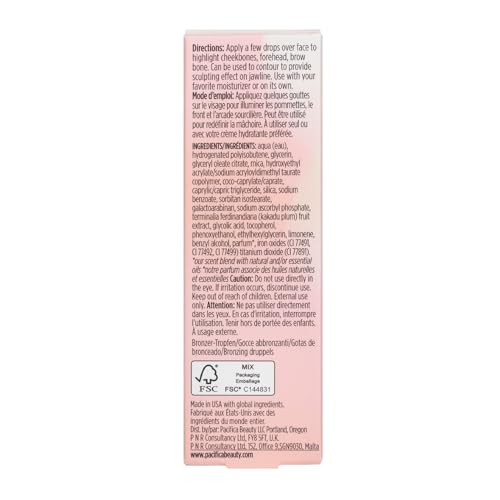 Pacifica Sunny Glow Liquid Face Bronzer Drops - Face Makeup Bronzing For Face & Cheeks for Instant Sun-Kissed Glow - Vitamin C & Glycolic Acid Infused Liquid Bronzer Illuminating Highlighting
