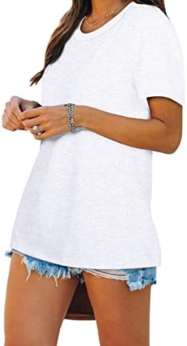 Jescakoo Womens Tops Summer Short Sleeve Ribbed Trim Crewneck T Shirts Fashion Basic Tee