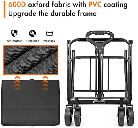 NEOTEC Collapsible-Folding-Wagon - Wagon Cart Heavy Duty Foldable Outdoor Utility with Silent Universal Wheels, Adjustable Handle for Camping