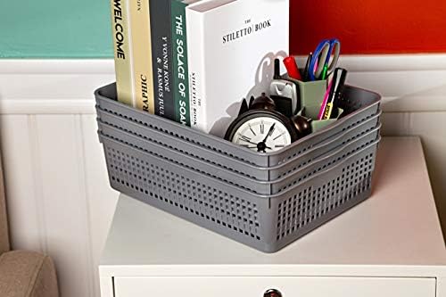 Eslite Plastic Organizing Baskets\/Storage Tray Baskets,6-Pack,Gray